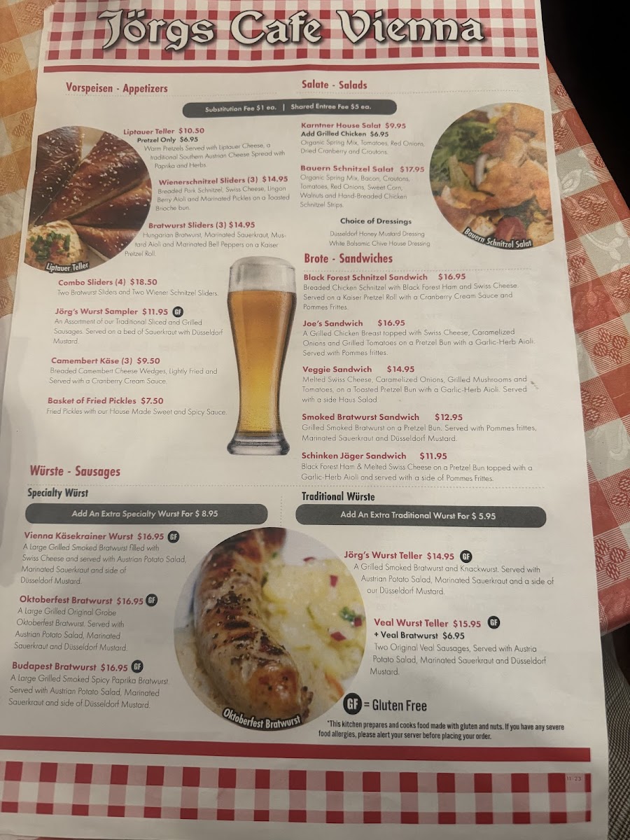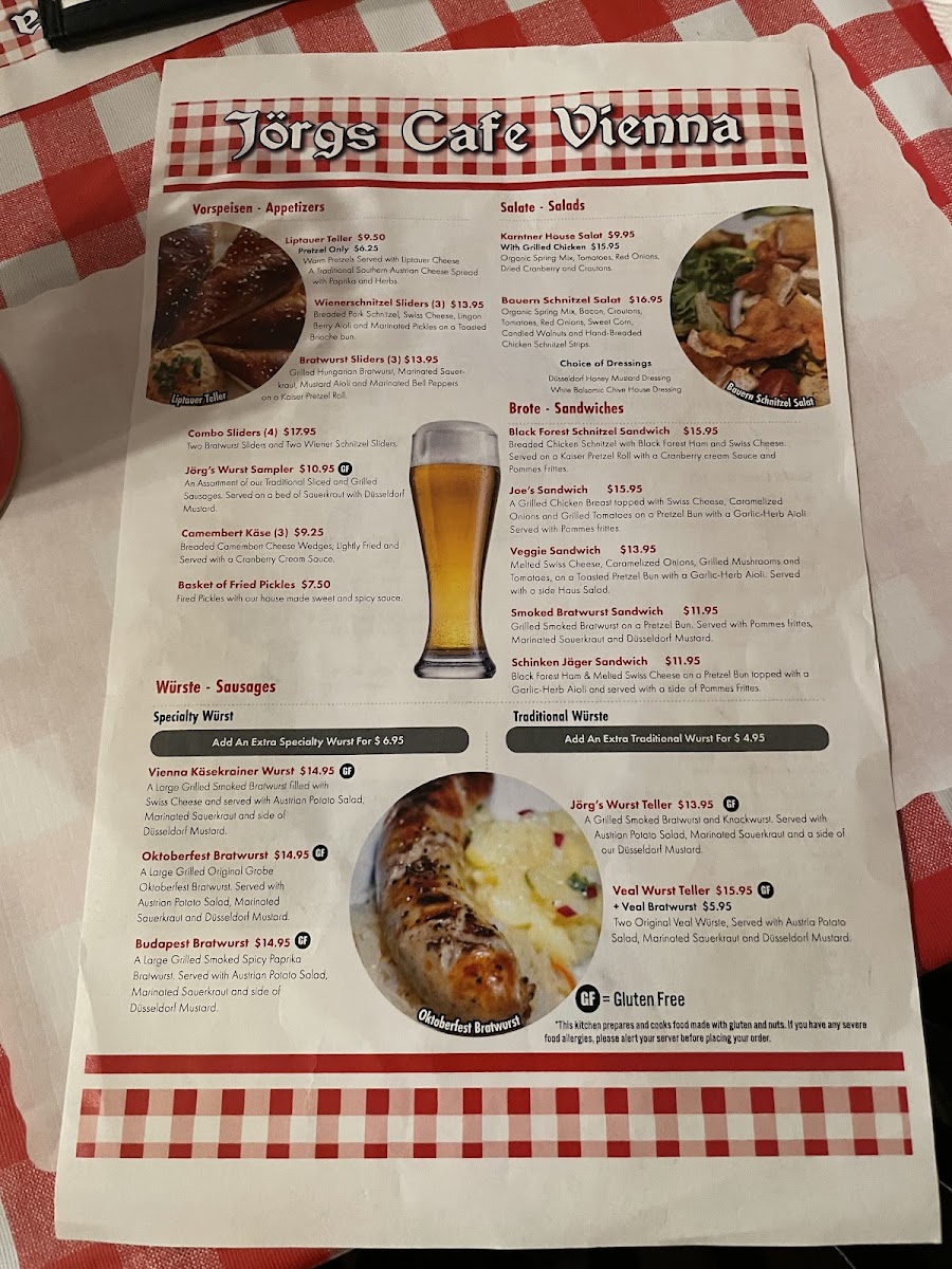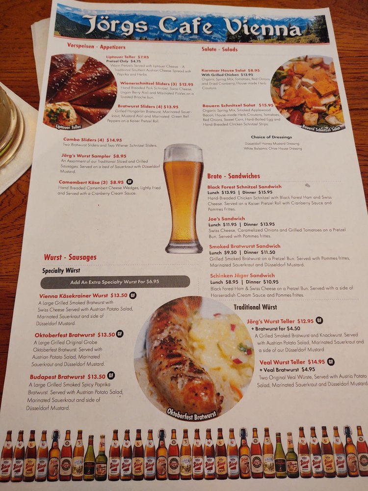 Jorg's Cafe Vienna Menu