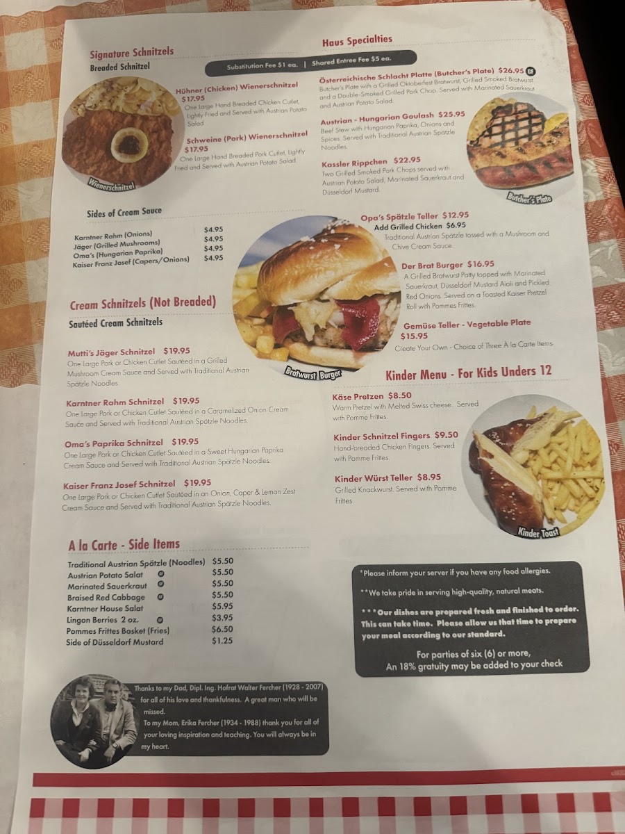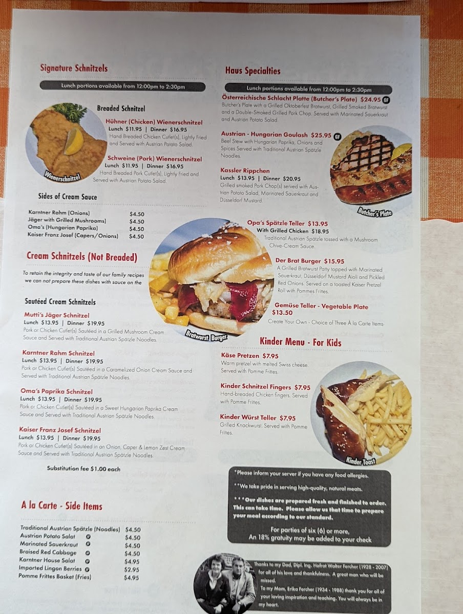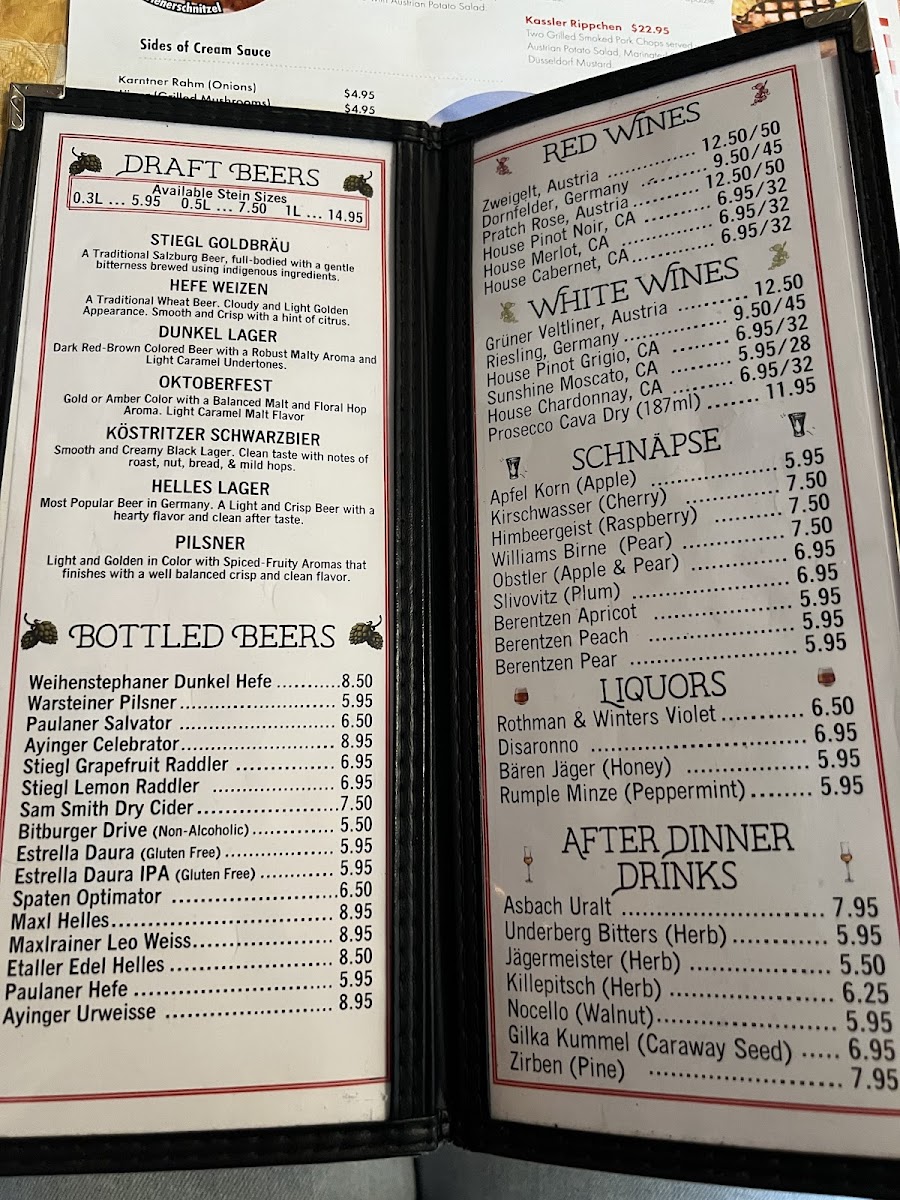 The menu at Jorg's Cafe Vienna offers a variety of Austrian, German, and European dishes that reflect traditional flavors and preparations. It is organized into several key sections to cater to different dining preferences, including appetizers, sausages, main courses, desserts, and beverages.